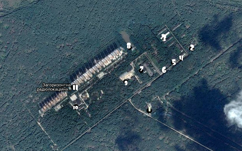 ЗГРЛС в городе Чернобыль-2 предназначалась только для приёма сигнала, передающая антенна, высотой 85 метров, находилась в 60 километрах на северо-восток в военном городке Любеч-1 (в/ч А3330). Все это составляло узел Дуга-1 - советская загоризонтная радиолокационная станция для системы раннего обнаружения пусков межконтинентальных баллистических ракет.