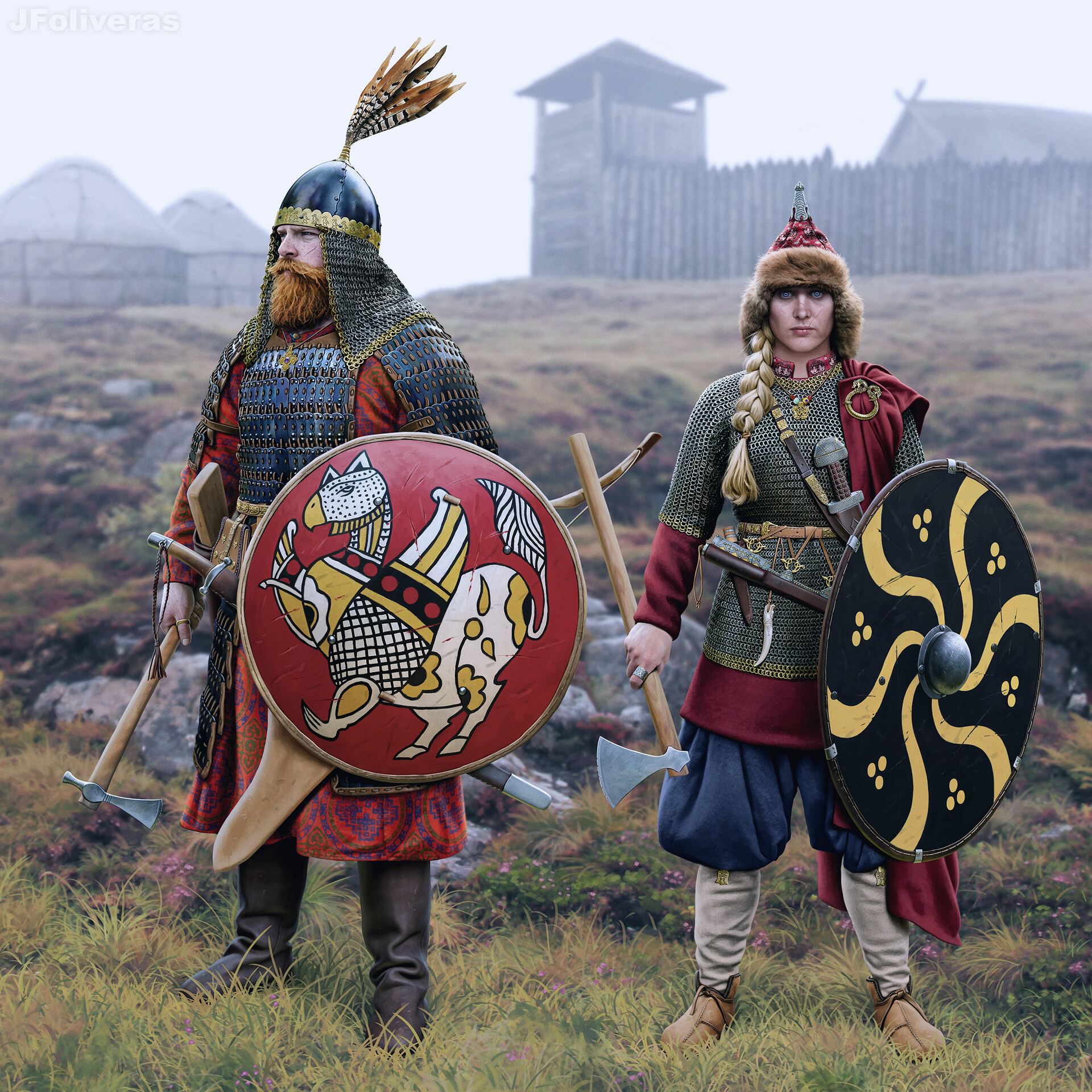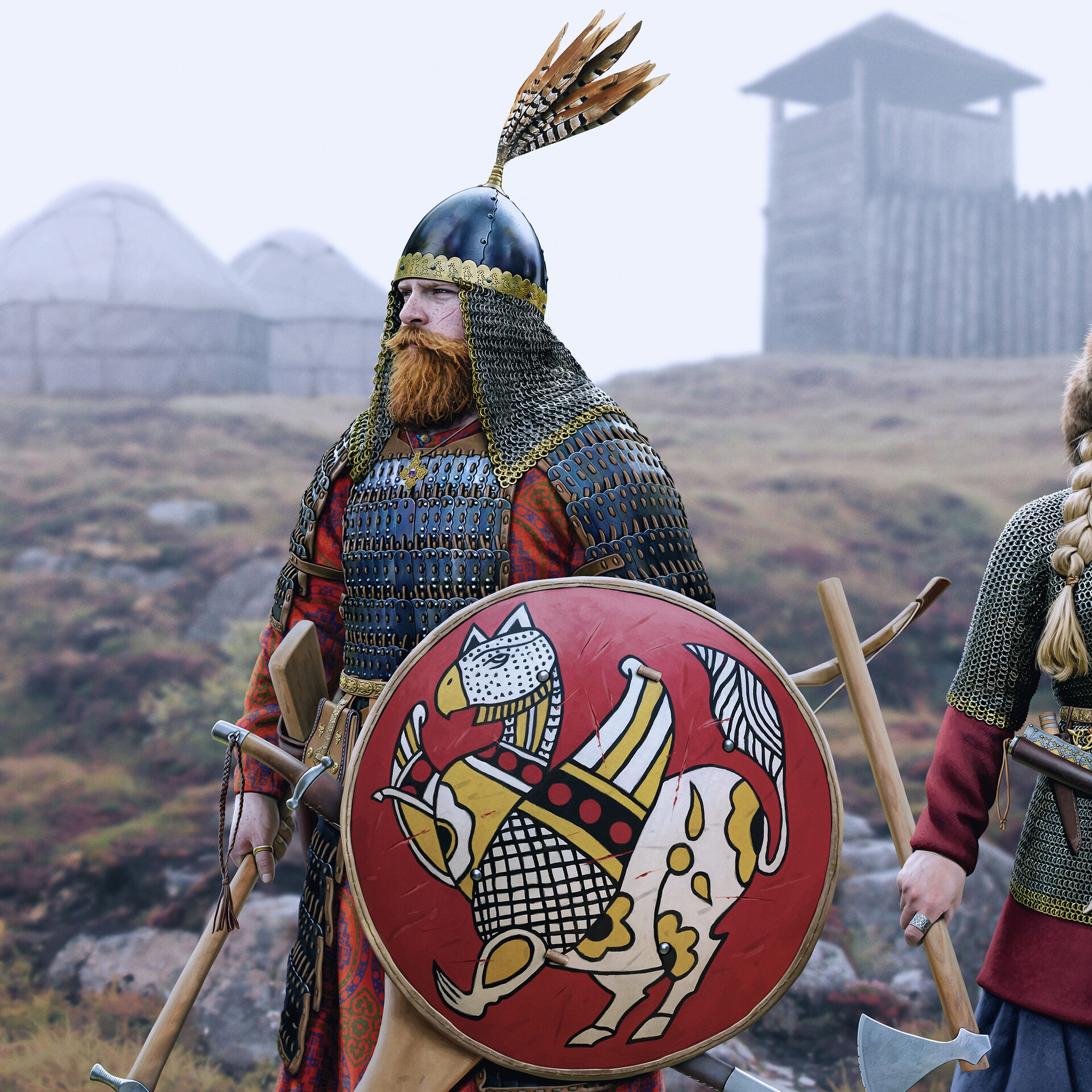 ВОСТОЧНОСЛАВЯНСКИЙ НАЕМНИК ИЗ ЗЕМЛИ РУСОВ: Этот воин был реконструирован с использованием различных артефактов восточного происхождения, найденных в Бирке (за исключением сабли, которая не из Бирки, а основана на находке русов из Шестовицы).
