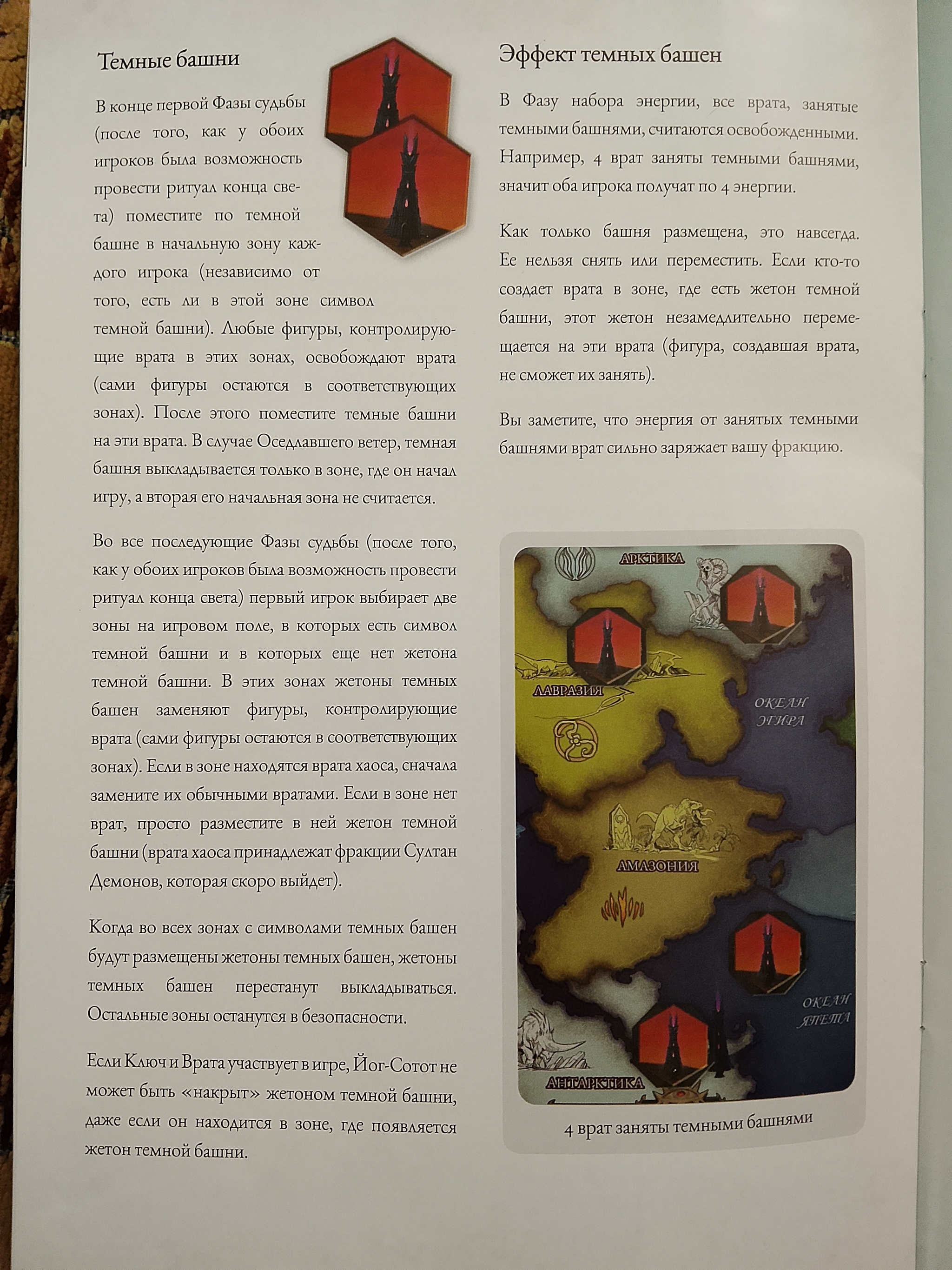 Добрый день. Подарили мне такую игру. Большую версию хвалят, а вот по этой, дуэльной очень мало информации. И читая правила и е могу понять логики Тёмных башен. Вот есть в игре порталы, ты ставишь своего аколита на него и призываешь монстров. Но в этой версии игры появляются тёмные башни, которые надо по две штуки выставлять каждый ход. Башни блокируют захват портала аколитами тем самым не давая призывать монстров. Да, они дают энергию, но и тебе и опоненту. Башен в игре на 4 меньше порталов. То есть при огромных территориях мы с оппонентом будем ютиться на паре-тройке локациях, что бы была возможность призывать войска? Или я не догоняю?