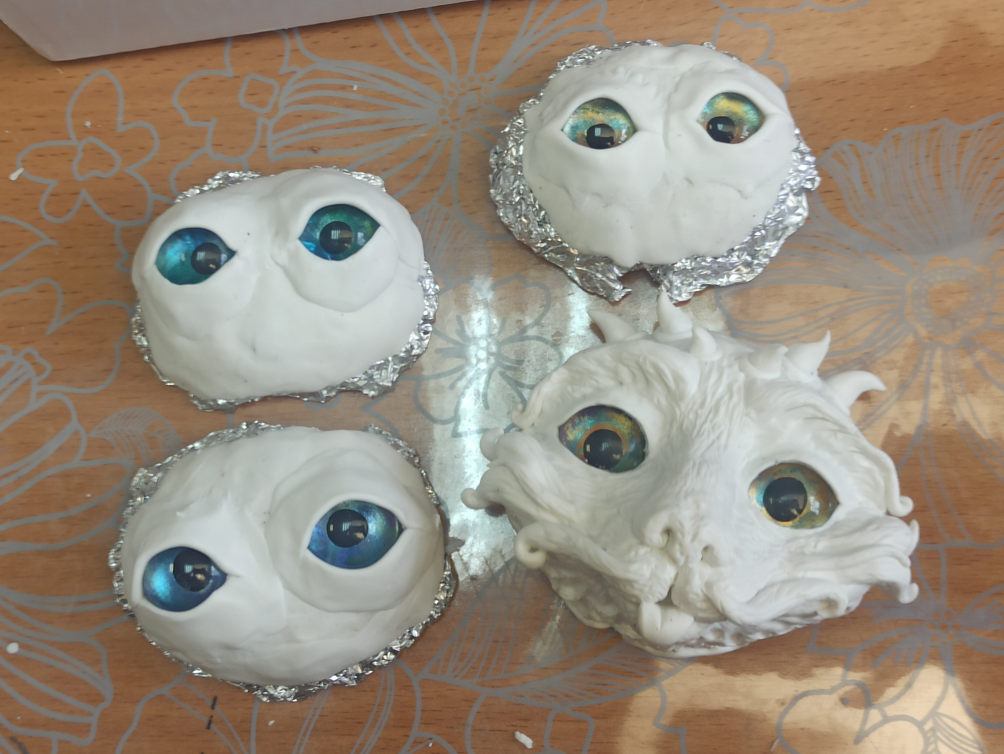Облепливаю глаза, и потом наращиваю объём. Все получаются со своим характером. Я стараюсь сделать эффект следящих глаз, чтобы мои звери выглядели живыми. При лепке век нужно выдержать определённый угол глаз, а также величину верхнего века.