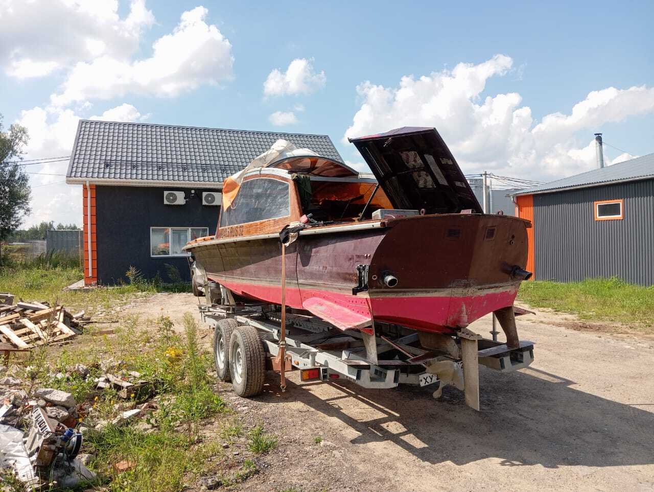Ну и ещё одну знакомый притащил с Севастополя с мотором от ЗИЛа (но вроде 509 7.0литра,но незнаю,он на к135,)она была рыбопромысловая,вроде хочет восстановить,но малыми очень темпами.летом спустили,прокатились,ужас конечно,много надо переделывать всего