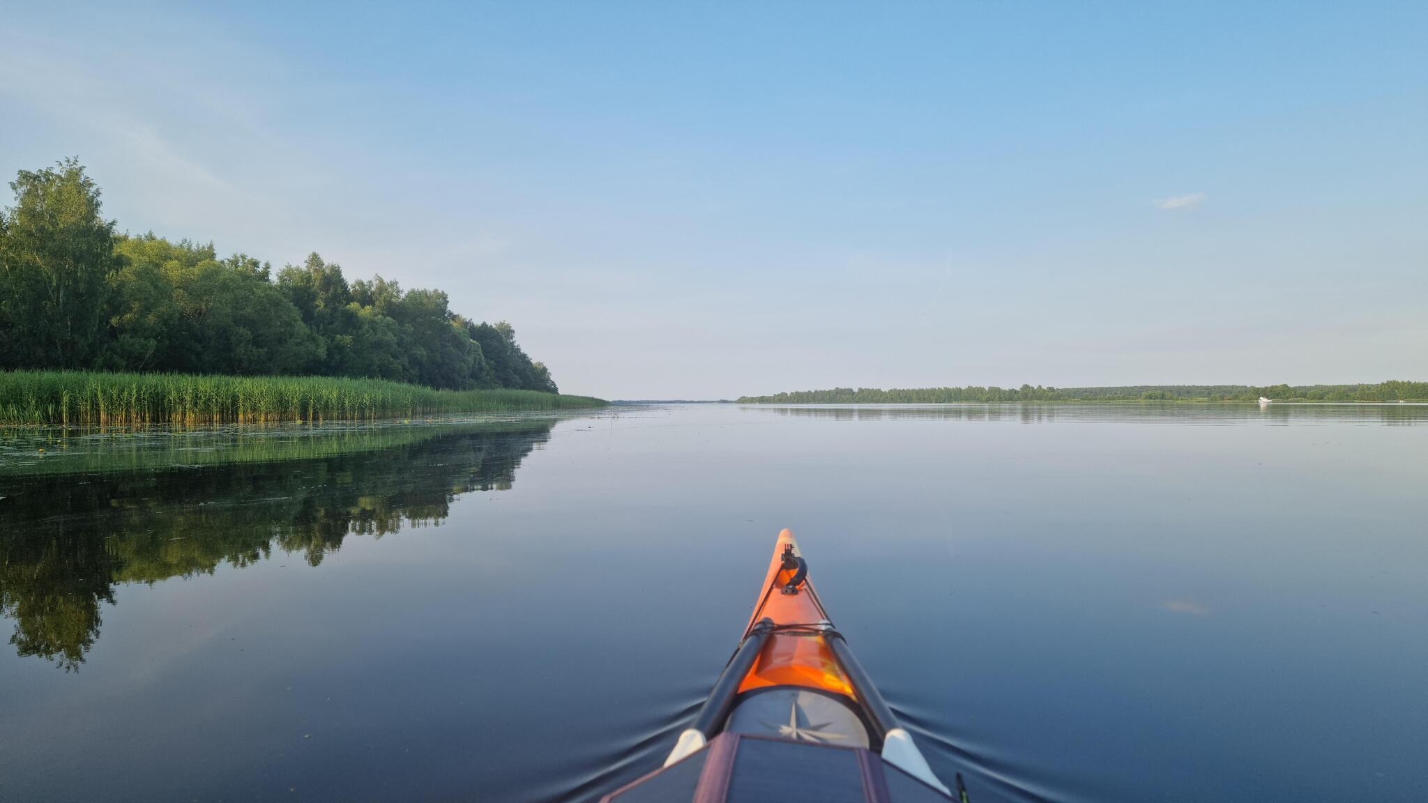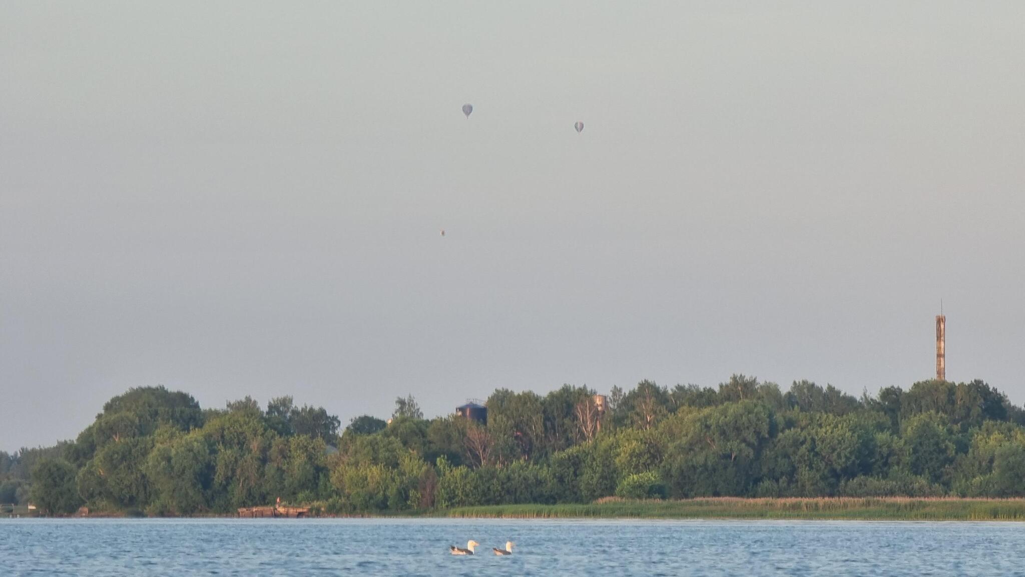 Следующий час я плыл вдоль бесконечных заросших берегов без единого намека на хоть какую-то пригодную площадку. В какой-то момент, подняв глаза, я увидел вдалеке… воздушные шары. Далеко, в стороне Костромы. Сначала подумал, что от усталости уже глюки пошли. Потер глаза, приблизил камерой — нет, реально шары. Чего только в этом походе не увидишь.