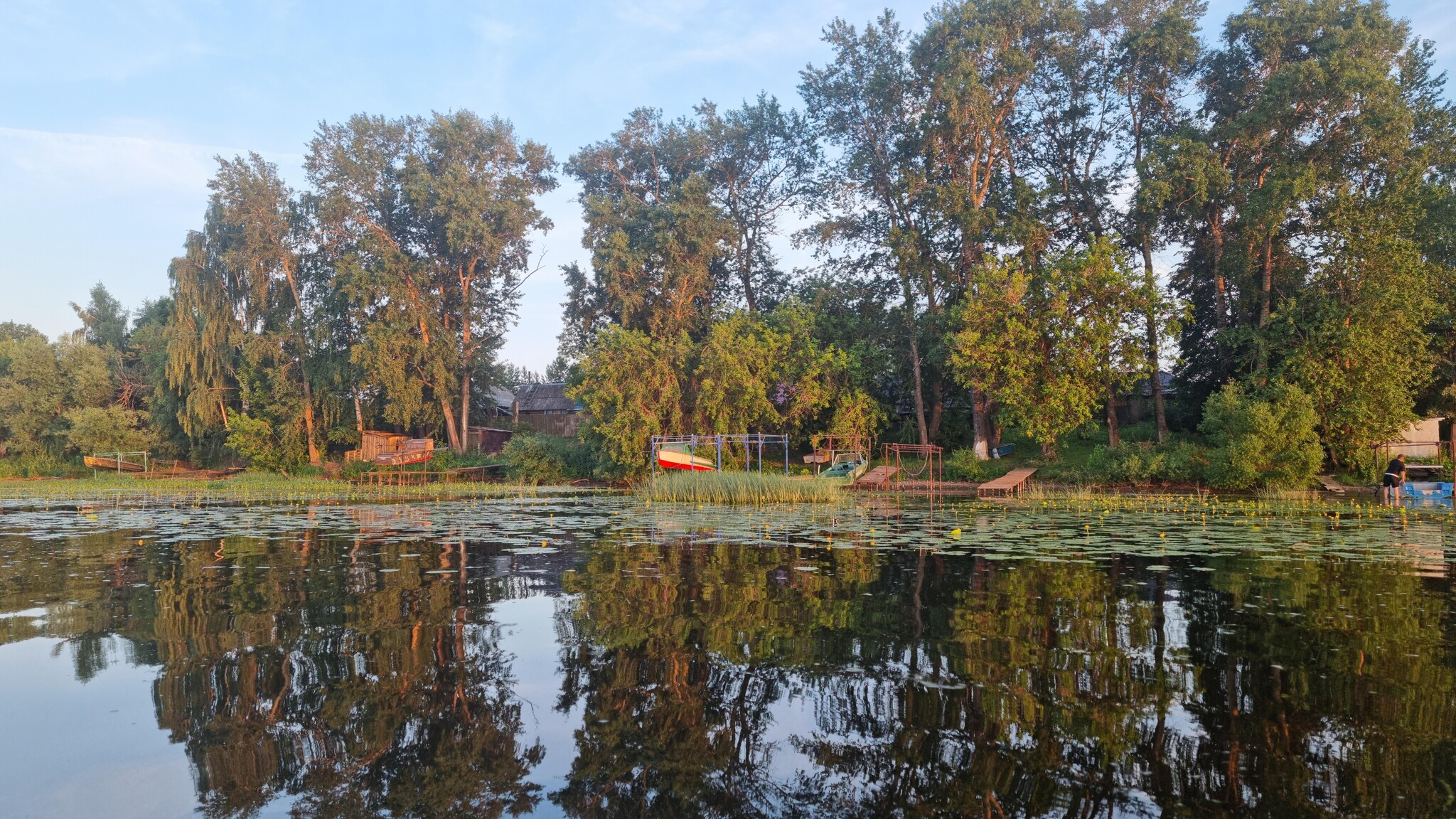 Вскоре по правому берегу показался населённый пункт, и в нём даже были небольшие площадки, подходящие для ночлега. К сожалению, они находились прямо на проходе перед домами, где постоянно ходили местные жители и причаливали лодки, возвращающиеся домой. Разбить там лагерь не представлялось возможным.