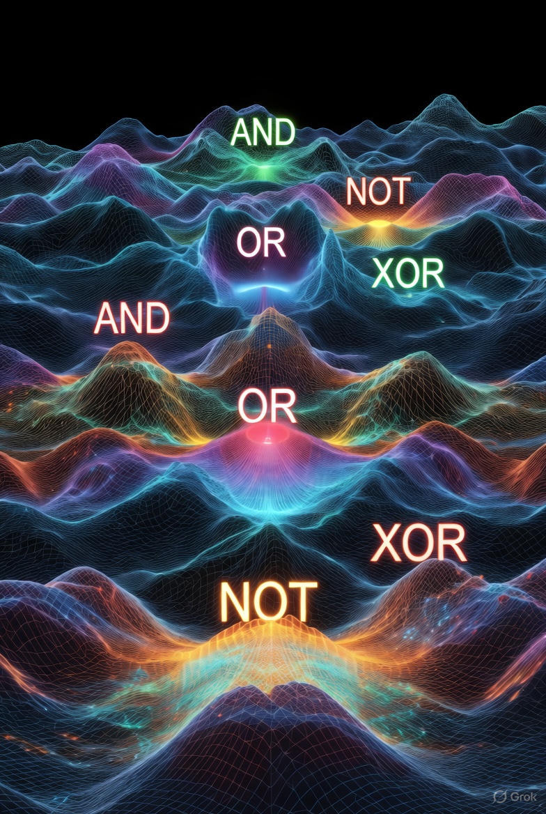 Мы говорим о Волновой логике — новом подходе к вычислениям, который не использует электричество для переключения. Вся магия происходит внутри специальных псевдоповерхностей с переменной отрицательной кривизной , где логические операции выполняются за счет физики волн (свет, звук, радио) и их взаимодействия с формой. И всё это возможно благодаря Геометрической Волновой Инженерии псевдоповерхностей переменной отрицательной кривизны. Здесь форма диктует правила: волна (-ы) заходит с одного конца, петляет... фокусируется... мешает сама себе... — и на выходе выдаёт логический ответ!