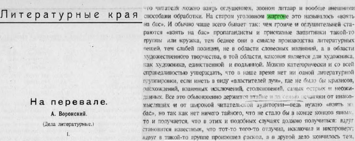 1. Электронный ресурс, 1923 г., №6. Рассуждения А. Воровского об уголовном жаргоне (см. ссылку в тексте «жаргон»)