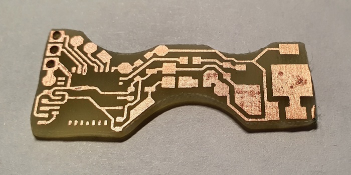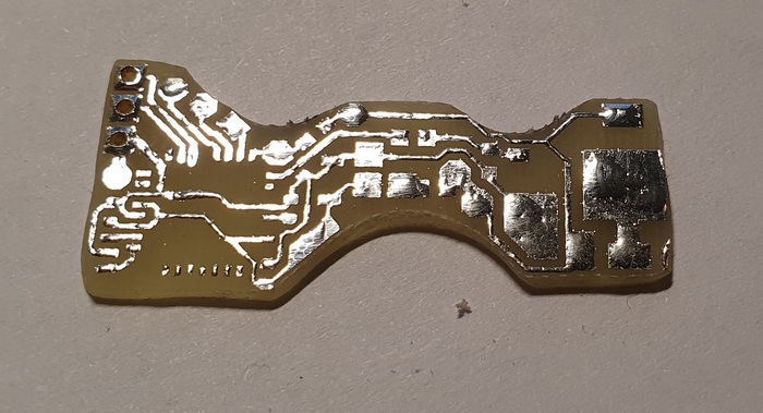 Не очень красиво, зато быстро. Перенес на стеклотекстолит, вытравил и убрал лишнее.