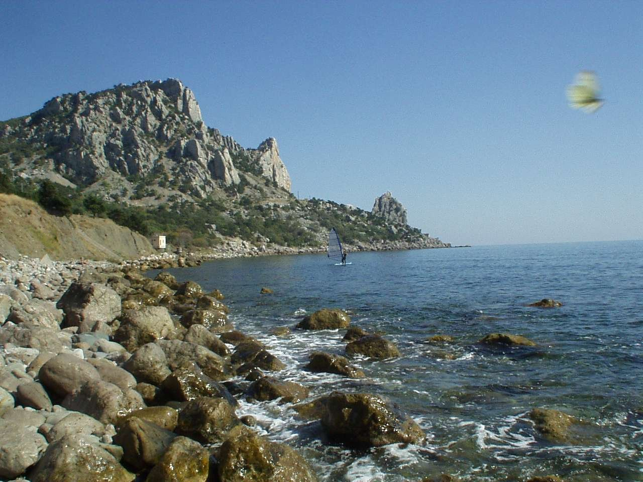 вид на скалу Крыло лебедя с пляжа со стороны Кацивели