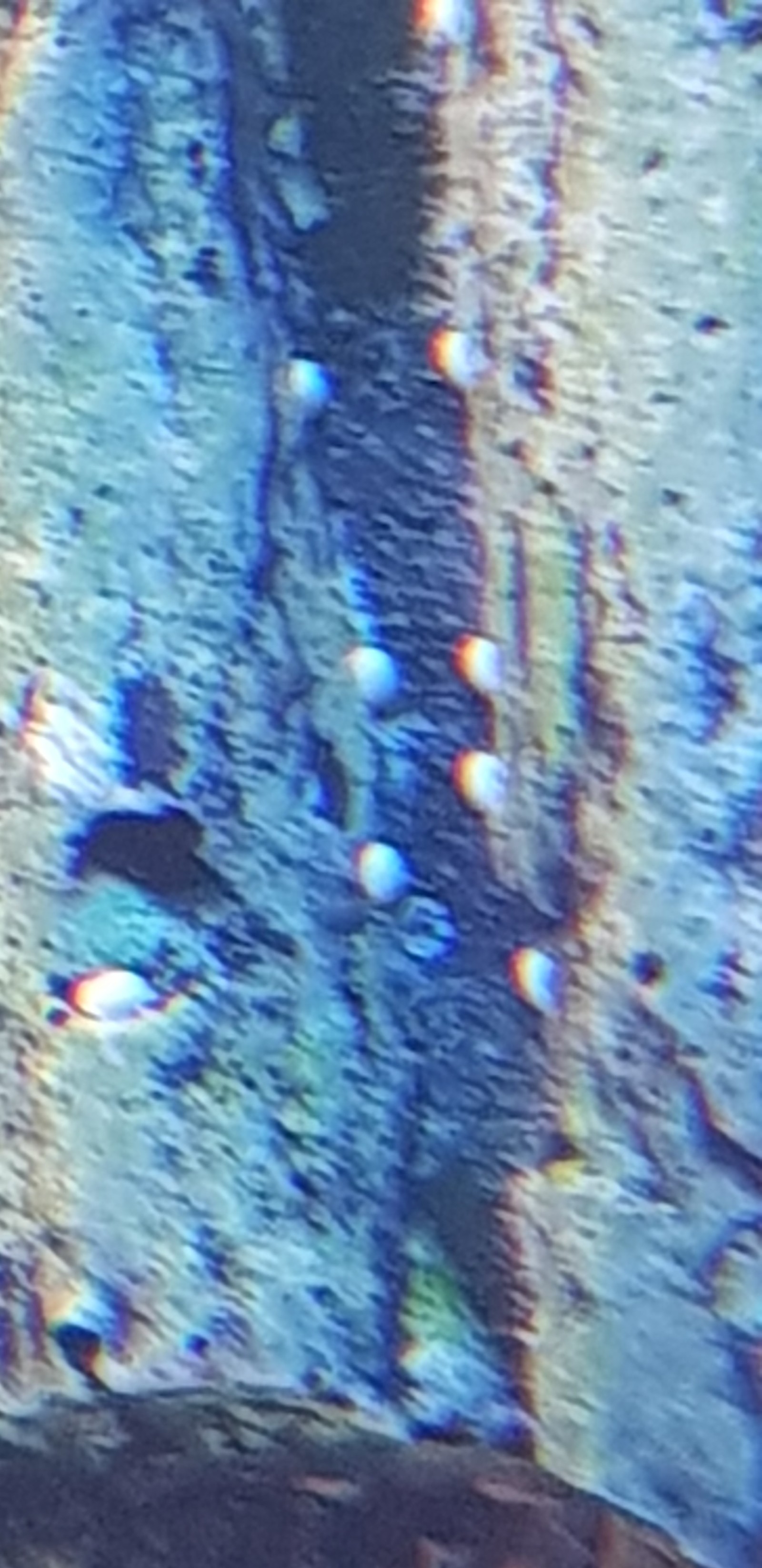 На декорациях, около полугода назад появились белые точки. Сначала не придавал им значения, подумал, что это маленькие улитки. Но не видно, что бы они передвигались, сидят на одних и тех же местах, размером с очень маленькую песчинку, примерно 0,5мм.