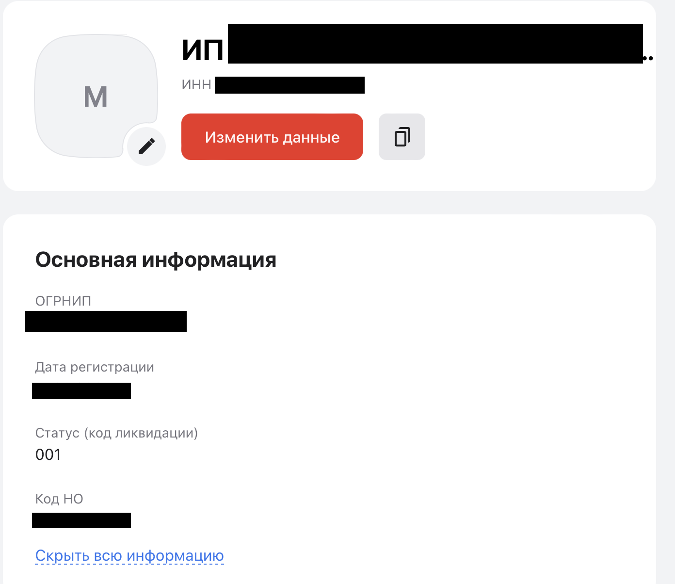 Есть ли графа "Статус (код ликвидации)" как у меня на скрине. Беглый Гугл говорит что этот статус обозначает "Преобразование" компании ( например ООО в АО или как то так) но проблема в том что ИП никак "преобразовываться" не могут, как собственно и я ничего не делал, бизнес работает.