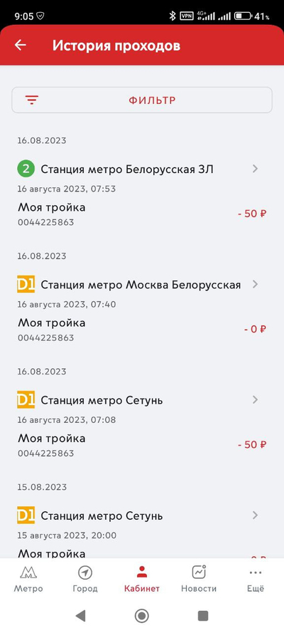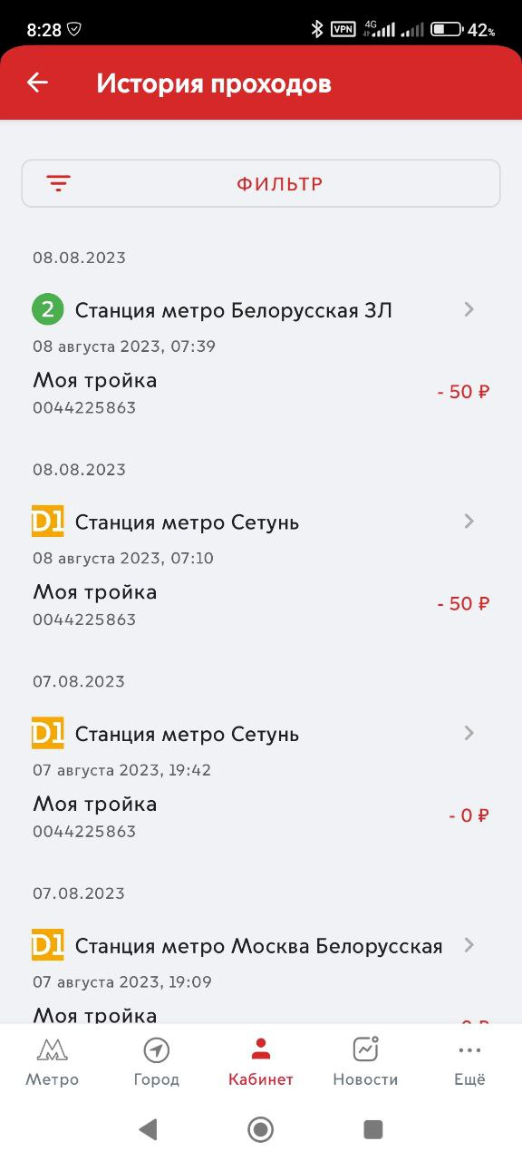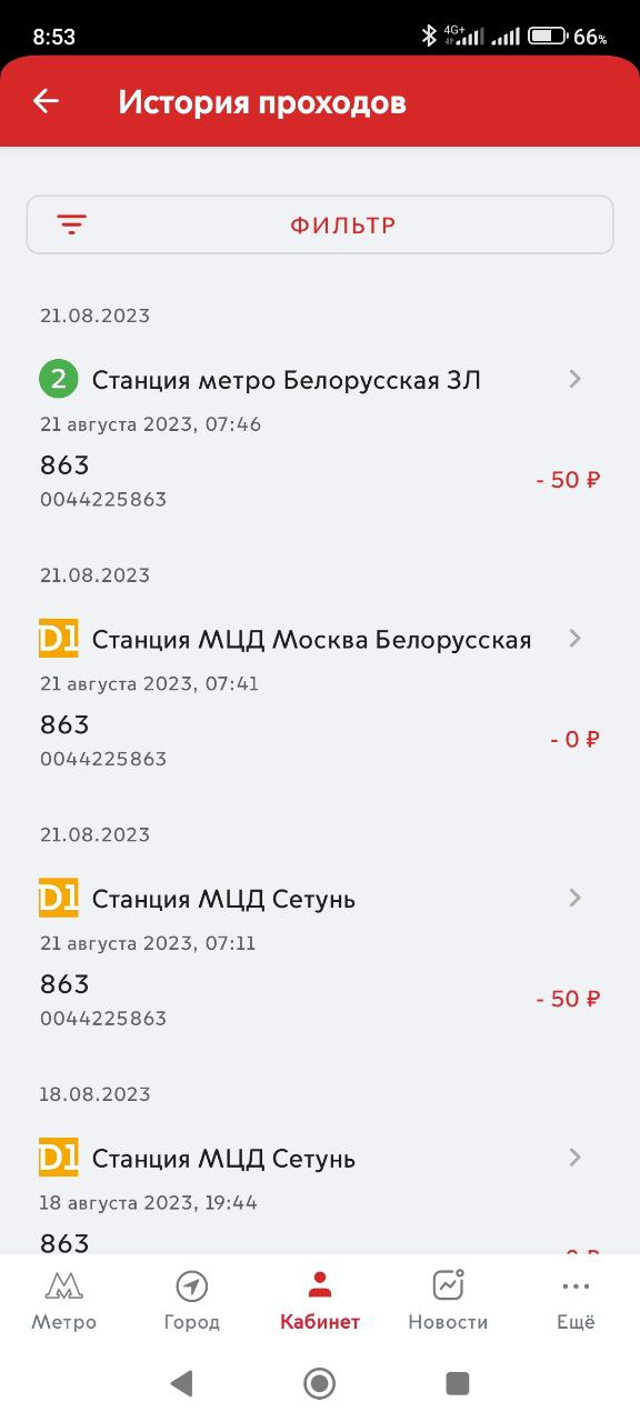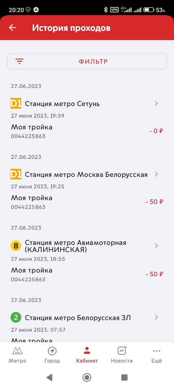23.06 при пересадке из метро на МЦД (Белорусская) было снято тоже 50 рублей... тут уже у меня было установлено приложение метрошное и скрин прилагаю.