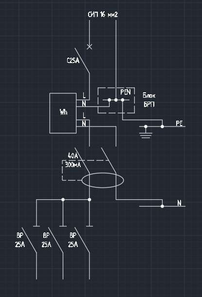 5. Линия на дом, (двуполюсной ИЕК С25А)