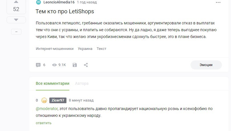 Уважаемая модерация,я давно заметила,что этот пользователь под ником"LeoncioAlmedia16"оскорбляет других пользователей и позволяет себе унижать даже другие национальности(евреев,украинцев),почему вы позволяет таким пользователям свободно это делать на протяжении 5 лет?Просьба удалить данный пост у этого пользователя из профиля.Возможно также этот пользователь использует мультиаккаунт.