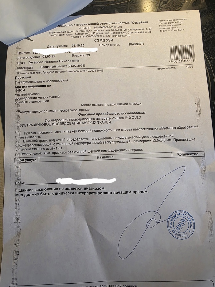 Сходил на прием к хирургу, направили на узи. По результатам УЗИ реактивная шейная лимфоденопатия. Врач УЗИ сказала что это незлокачественно.