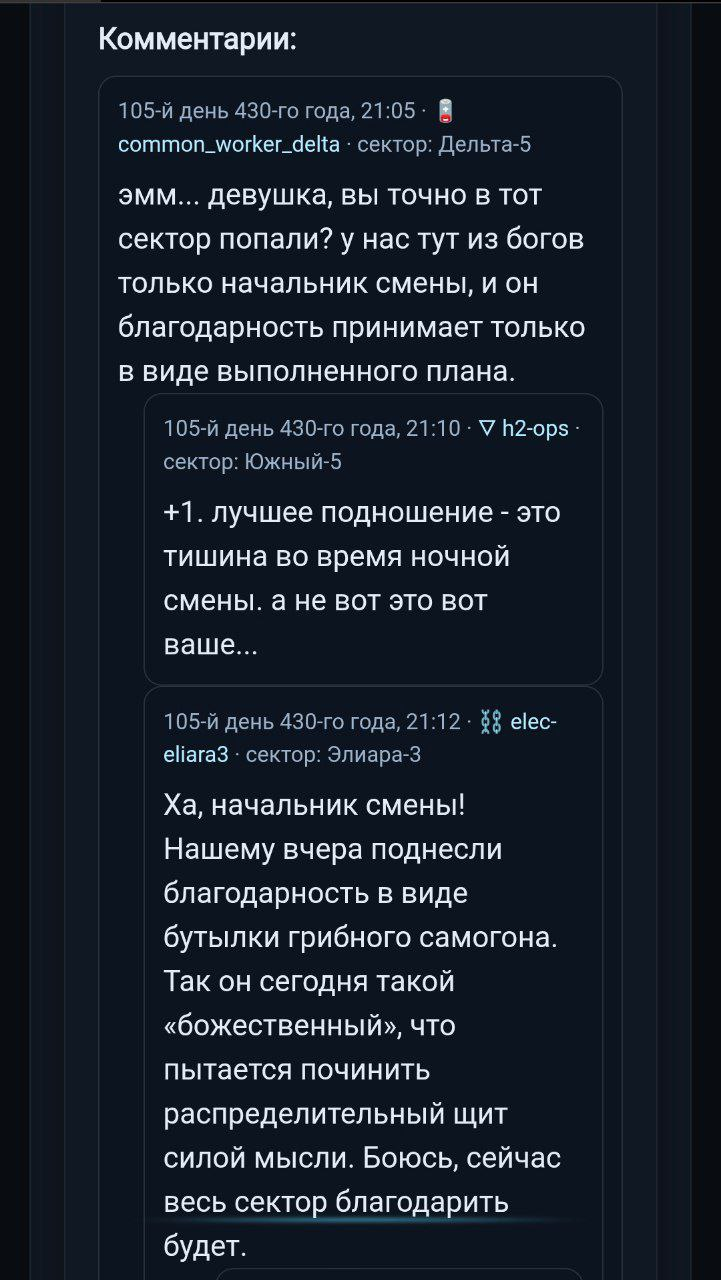 Интерактивные истории в формате псевдофорума. Больше историй и ссылка на форум (реализован отдельным сайтом) -- в серии или профиле. Больше о мире -- в телеграм-канале.