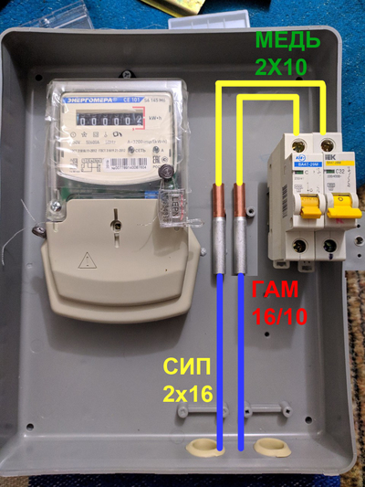 Контора, которая предоставляет услуги по подаче электроэнергии требует прямой кабель от столба к узлу учета. В текущий момент у меня счетчик находится в помещении. Кабель СИП 2*16 не горю желанием заводить в помещение, т.к. он для этого не предназначен. Да и счетчик в противоположном конце дома. Ладно бы если бы просто через стенку завести.