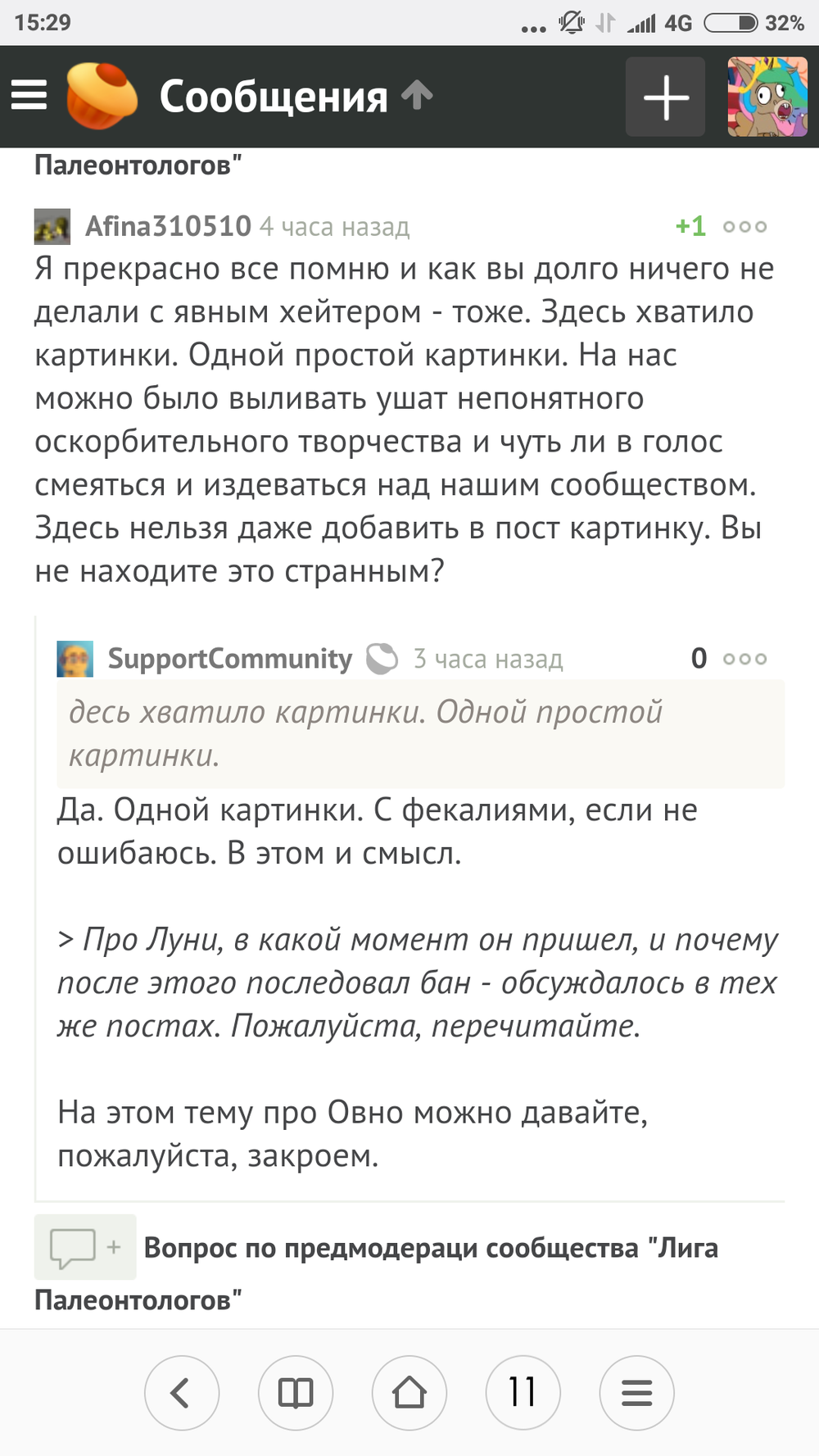 Я прекрасно все помню и как вы долго ничего не делали с явным хейтером - тоже. Здесь хватило картинки. Одной простой картинки. На нас можно было выливать ушат непонятного оскорбительного творчества и чуть ли в голос смеяться и издеваться над нашим сообществом. Здесь нельзя даже добавить в пост картинку. Вы не находите это странным?