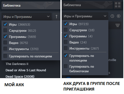 Столкнулся с проблемой связанной с семейным аккаунтом Steam. Есть у меня товарищ, у меня на аккаунте есть игры, в которые хотел бы поиграть он, а у него - в которые я. Решили мы связать наши аккаунты в семейную группу, все сделали по инструкции с моего компьютера. Как итог - я вижу в своем аккаунте всю его библиотеку. Он, зайдя со своего компа (при выключенном моем), не видит моих игр, однако если я захожу в свой аккаунт с моего компьютера, у него в библиотеке появляются мои игры. Думали какой то баг на его компе, зашел он в свой аккаунт на steam deck и моих игр там тоже нет. Если заходить в его аккаунт с моего компьютера - все есть, с его компа и с его дека - нет, пока я не зайду в свой аккаунт со своего компьютера.
