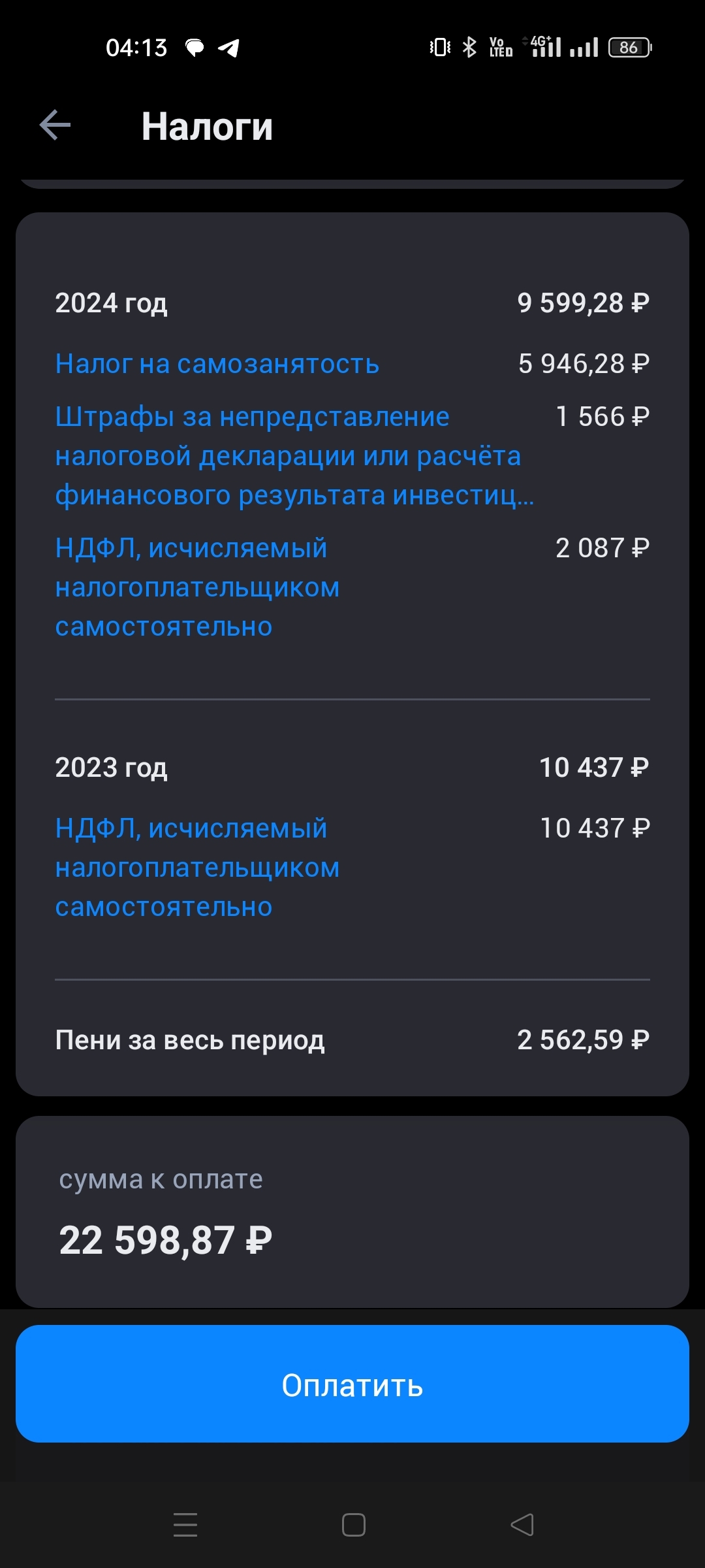 Я самозанятая, не всегда вовремя оплачивала налоги, но погашала. В приложении "Мой налог" задолженность около 7000 рублей. Решила зайти на госуслуги и вижу сумму около 23 000 рублей: