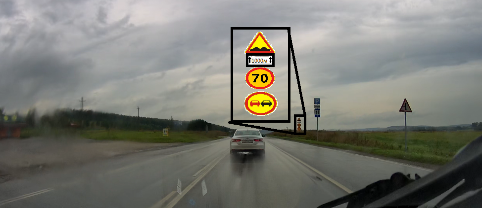 стоп кадр с видеорегистратора, обратите внимание на знак перекресток к какому перекрестку он относится