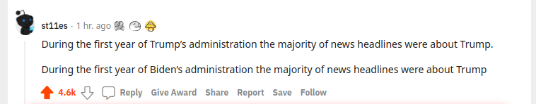 В течение первого года администрации Байдена большинство новостных заголовков были о Трампе.