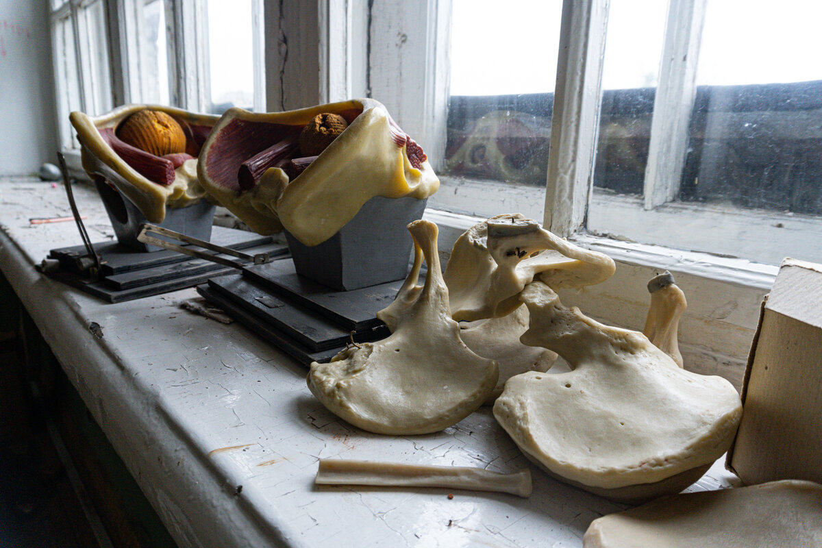 Здание оказалось медицинским колледжем, который уже несколько лет как не работает. В отличие от многих заброшенных мест Воркуты, тут еще остались следы ушедшей эпохи. Такое ощущение, что уходили от сюда в спешке, бросая все что не могли унести.