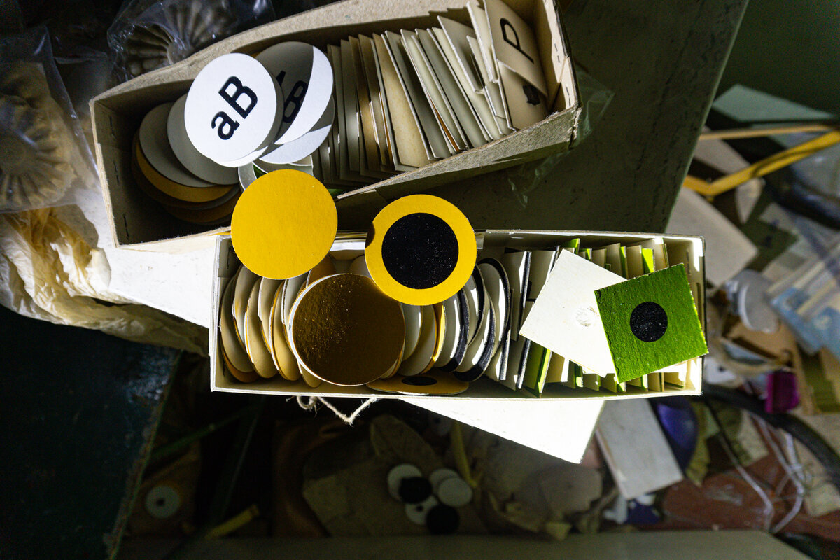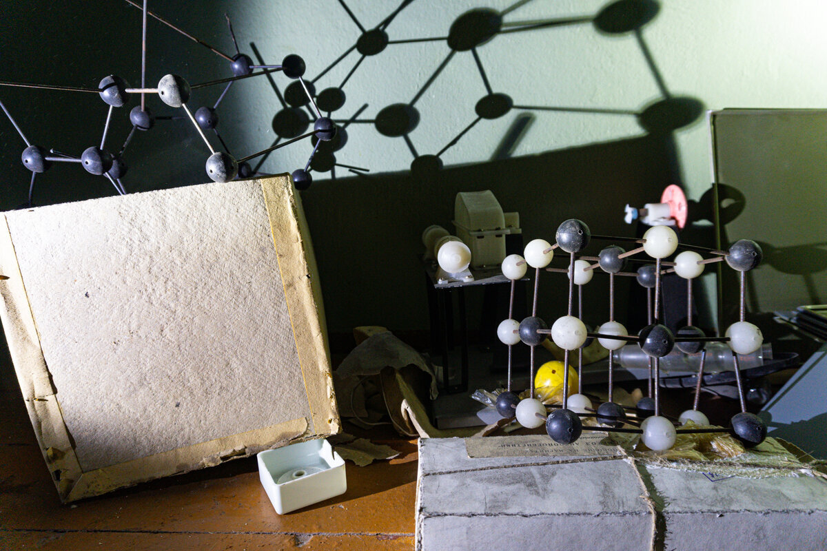 В другой комнате нашлись учебные пленки, макеты атомов из кабинета физики, и стекла с разными образцами для микроскопа. Еще какие-то кругляшки, которые так и не удалось определить.