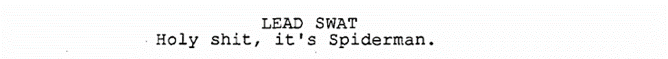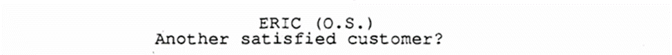 После этого эпизода нас знакомят с главным злодеем фильма – вьетнамцем Лао, который приветствует другого вьетнамца по имени Нго и, спустя несколько отпущенных реплик на вьетнамском (в сценарии лишь описывает их тон), убивает его. Мы же делаем вывод, что он плохой.