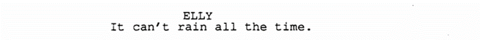 Серый день, но без дождя. Дарла сменила вид деятельности и собирается уходить, когда как Элли сидит тихо у окна. Мать подходит к дочери и приобнимет её, замечая, что дождь наконец перестал, на что Элли выдает культовую фразу: