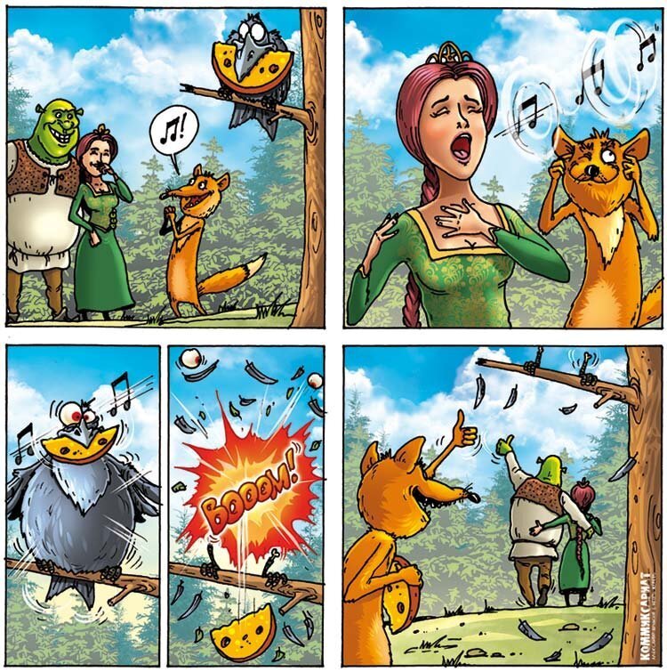 Настоящее народное творчество !) я думаю из всех моралей "Ворон" выбрал классику - когда просто сыр изо рта выпадает. А то остальные чё т ему не очень :Р
