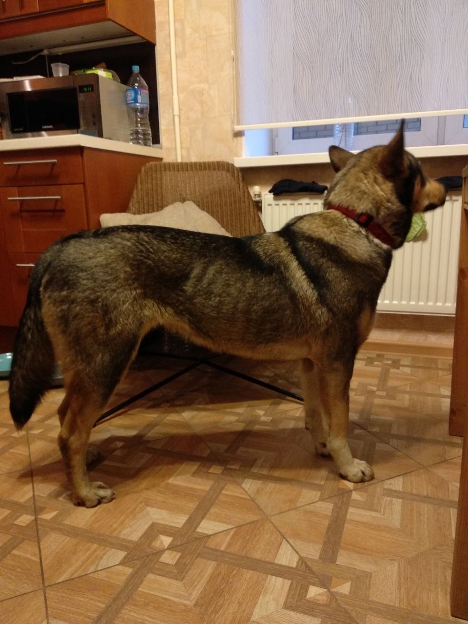 Отдалённо похожа на метиса чехословацкой волчьей собаки.