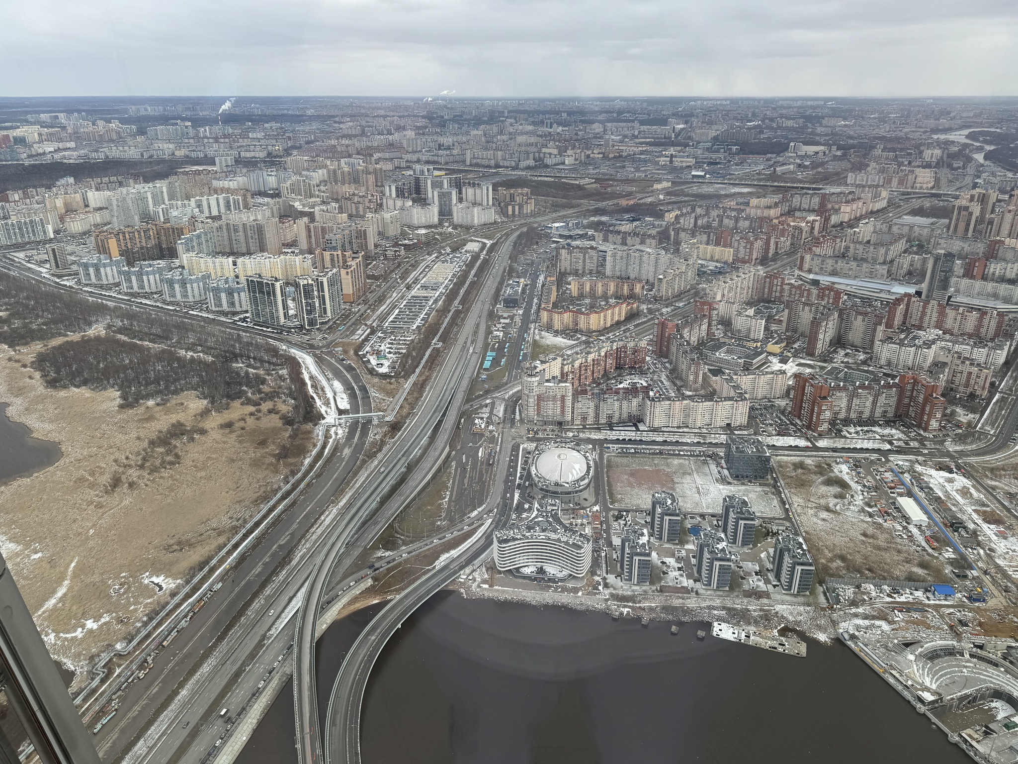 Обзорная площадка: на 360° открывается вид на Финский залив, бескрайние леса и весь Петербург, как на ладони.