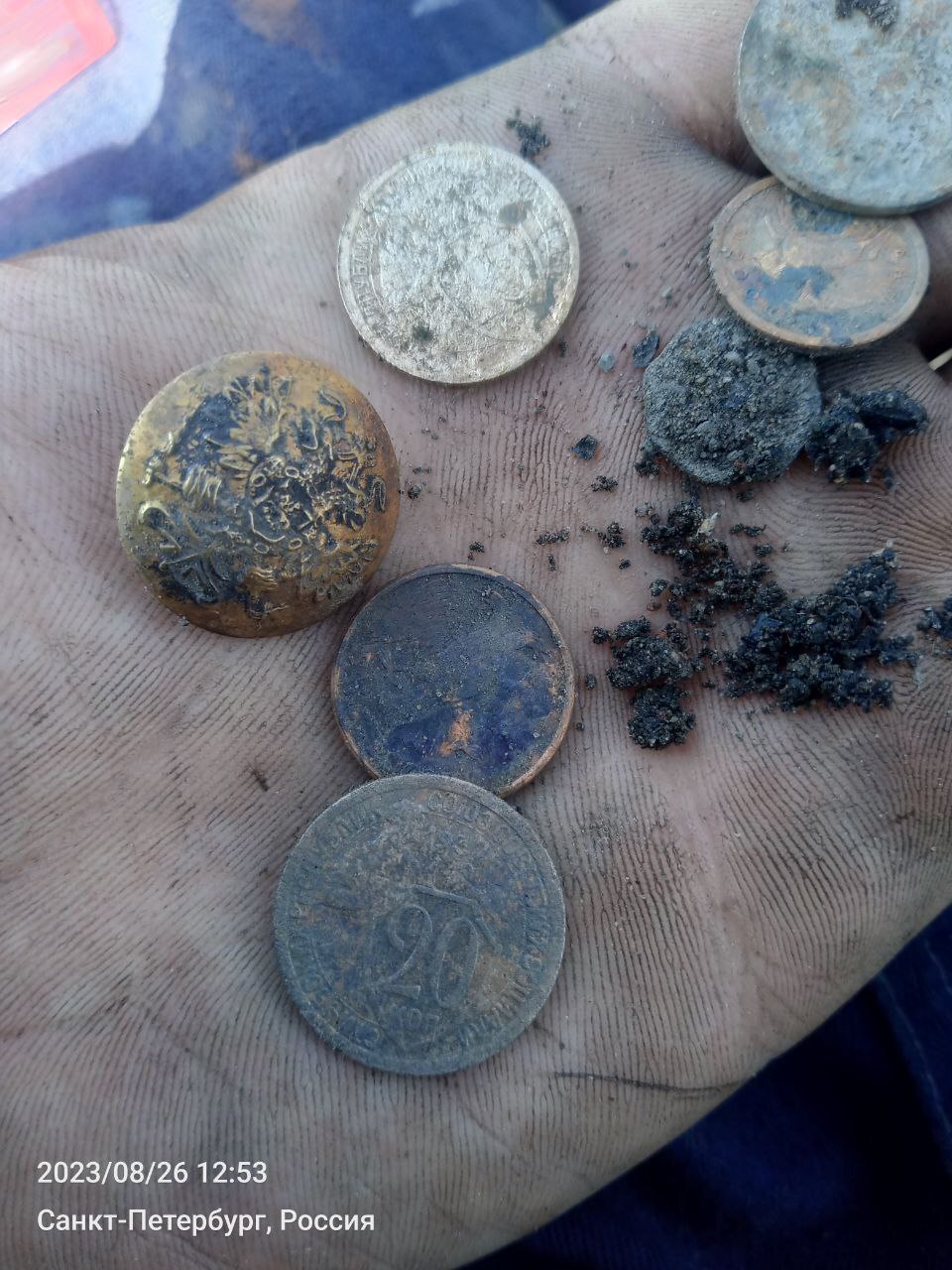 Так как это грунт со дна в СПБ, то в грунте попадалось много интересностей. Цветной металл, монеты, ложки, пуговицы. Один раз даже цепочку золотую поднял. Она конечно в ломбард отправилась, с тех денег жене ноут купил.