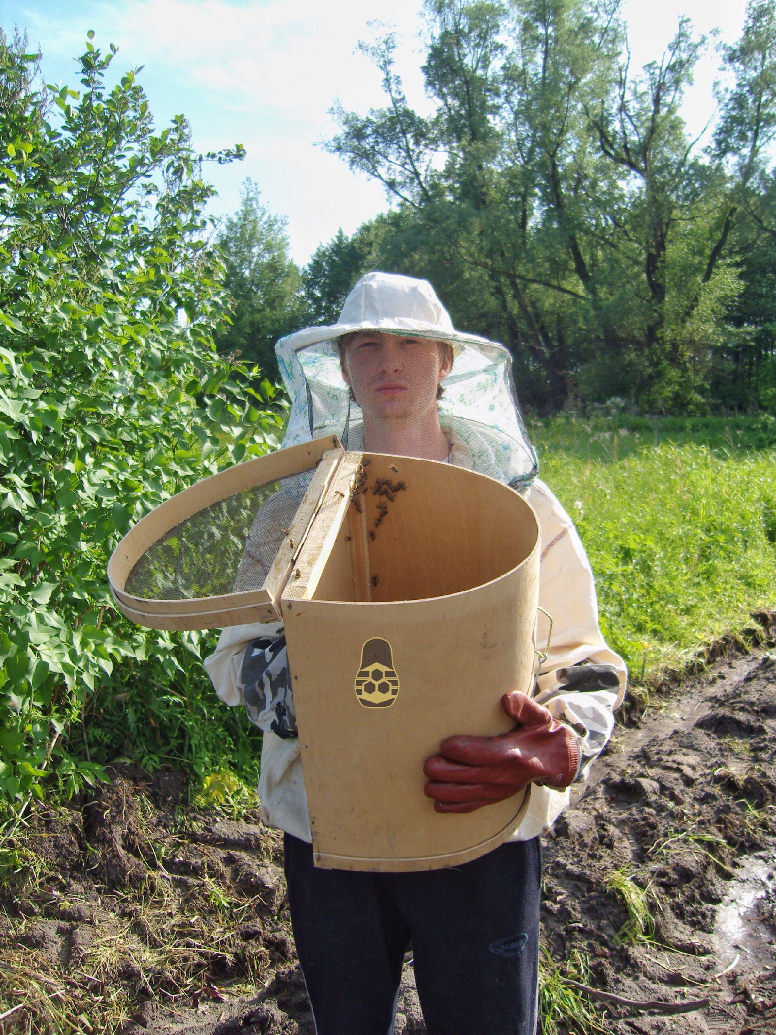 На старте я не делал инвентарь для пчеловодства, к примеру как сейчас — прививочный ящик для вывода маток, а покупал готовую продукцию. Одно из первых приобретений была — ловушка для пчёл.