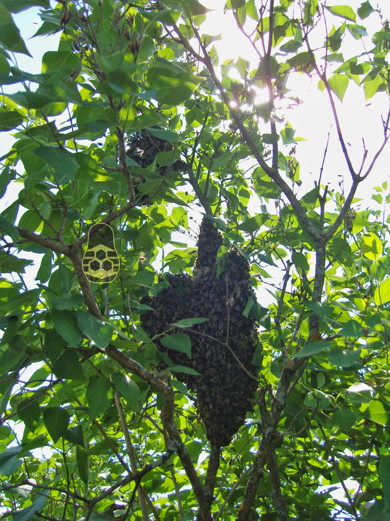 Мне повезло с местностью и на участке расположены кусты и с них гораздо удобней снимать рои пчёл.