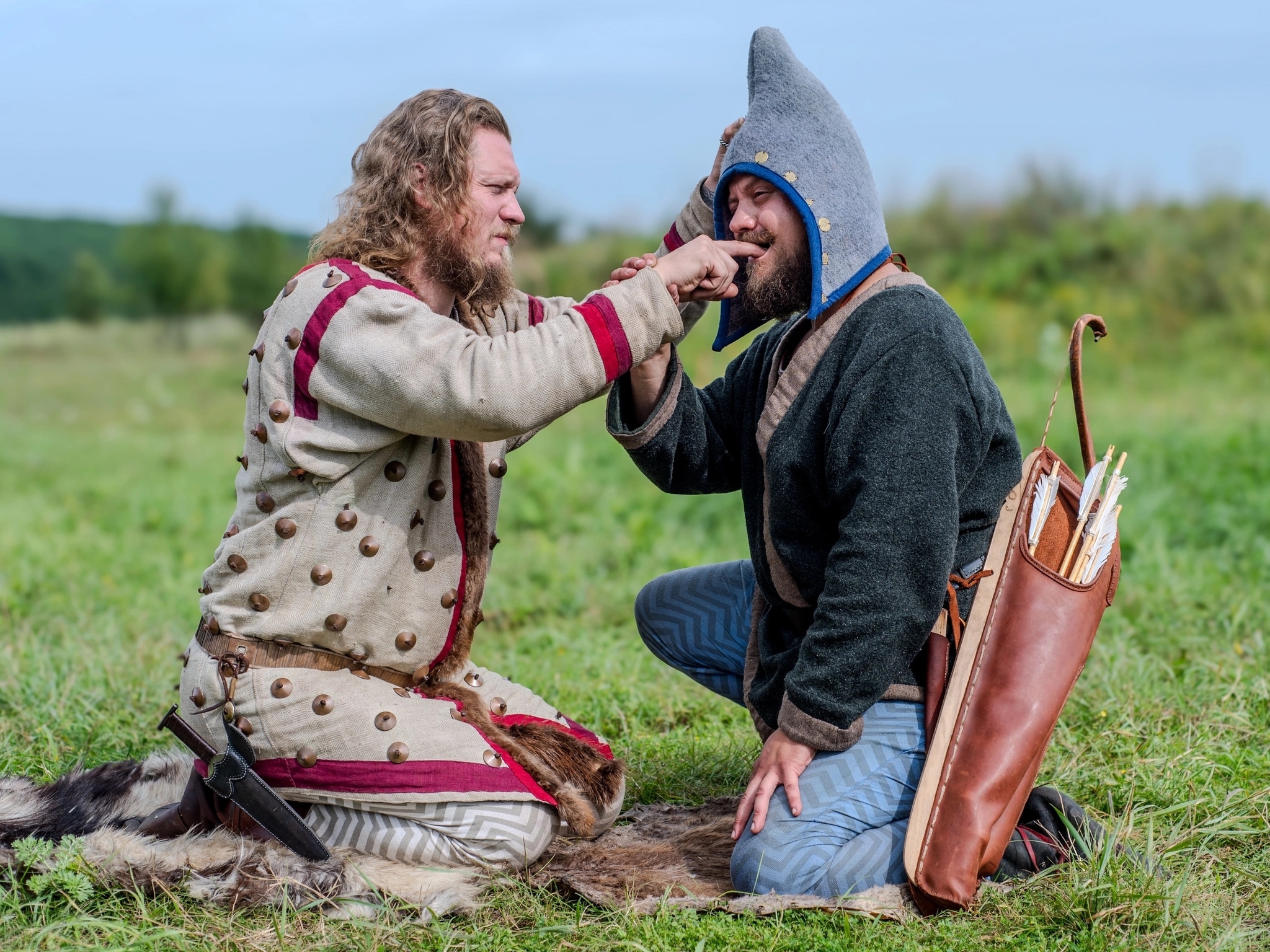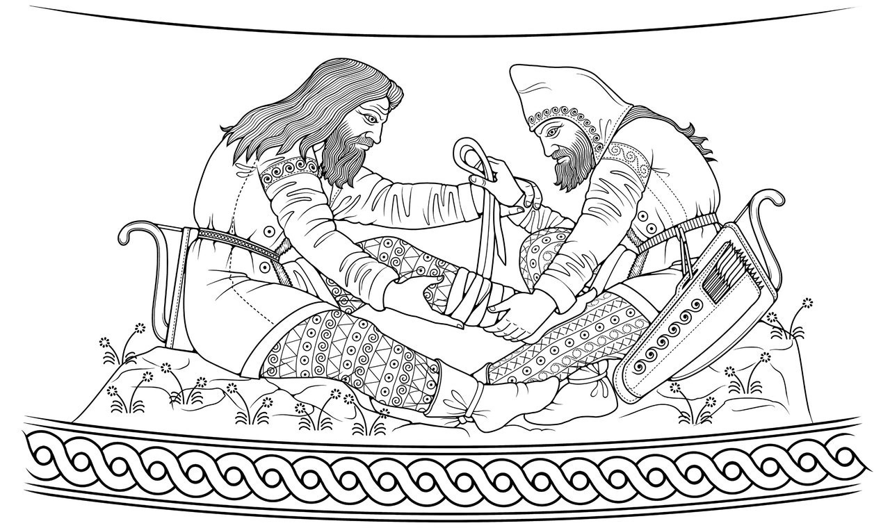 Изображённые на золотой вазе из кургана Куль-Оба. Переводится с крымскотатарского как "холм пепла" или "пепельный холм".
