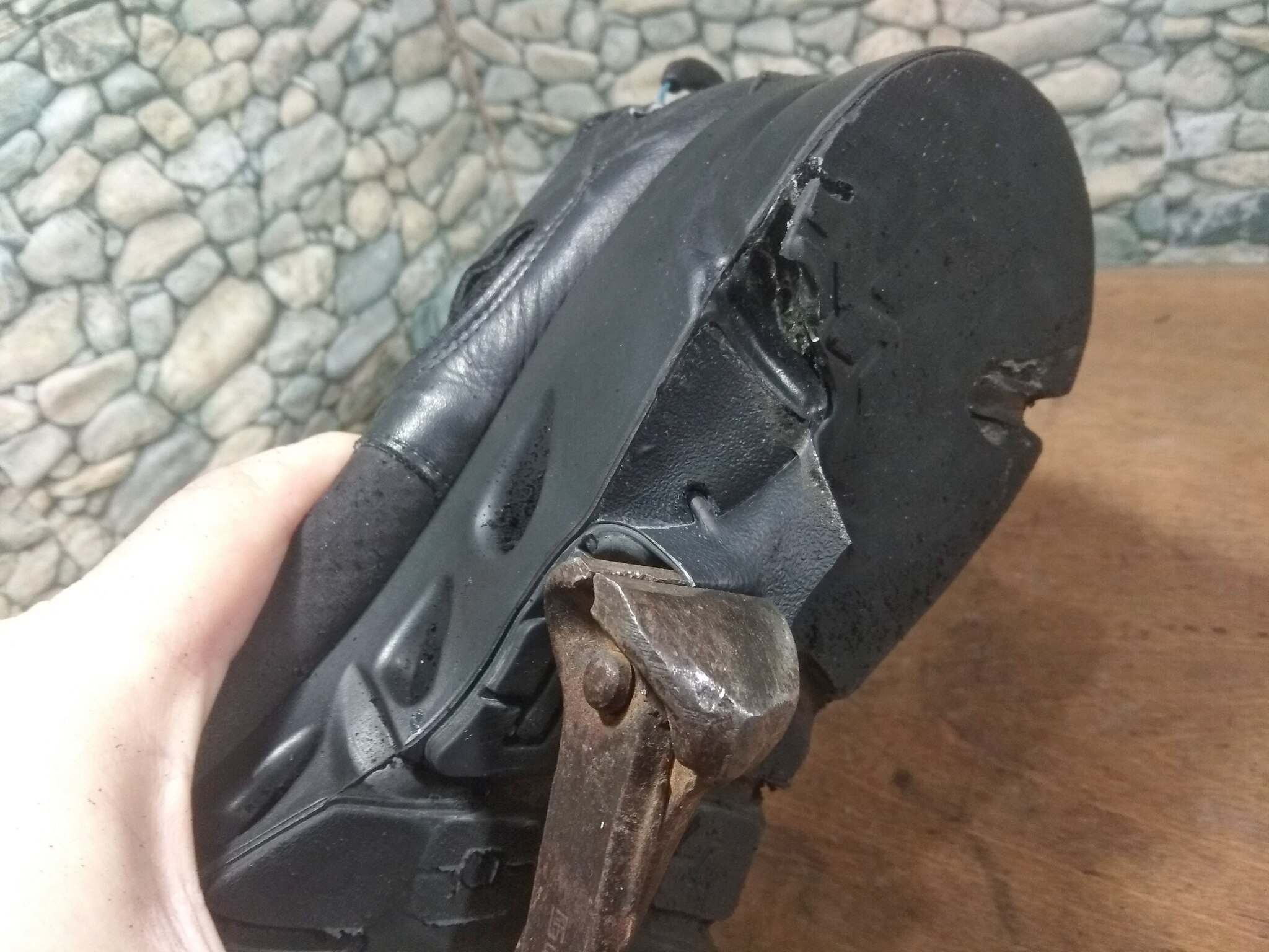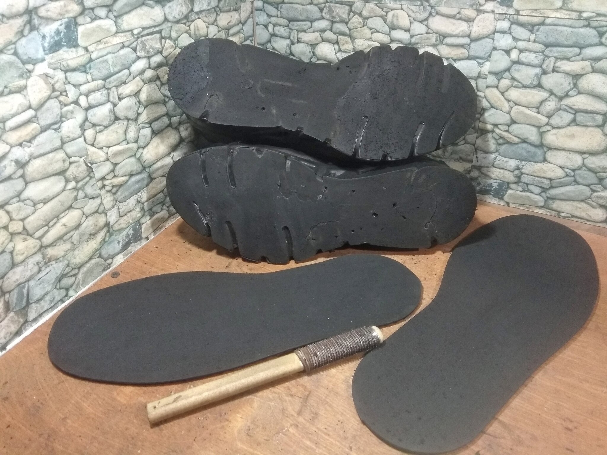 Зачистили подошву и наклейки. Прошлись царапалкой.