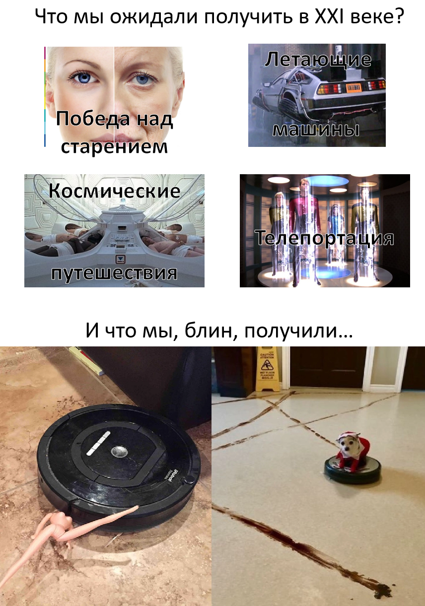 7 Art140 Специфический юмор Юмор Восстание машин 4 дня назад [моё] Мемы Картинка с текстом Ожидание Юмор Грустный юмор Борьба со старением Летающий автомобиль Космическая фантастика Телепортация Фекалии Собака Чихуахуа Робот-пылесос Новый Год Ожидание и реальность 6 Ещё 0
