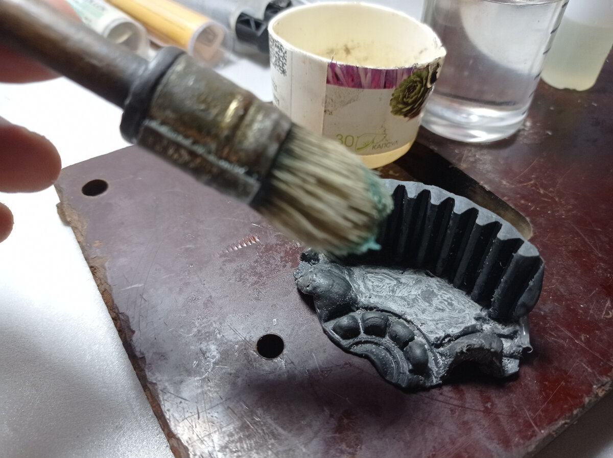 ⚠ Важный момент, на котором я прокололся, это объем заливки. Первый раз я просто почистил гравером поверхность, где находились зубья,