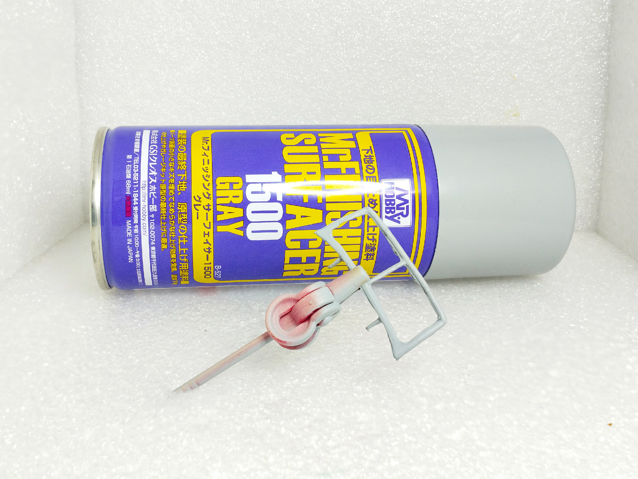 Далее подготовим доработанную раму к окрашиванию и покроем её финишным серым грунтом 1500 от Mr.HOBBY.
