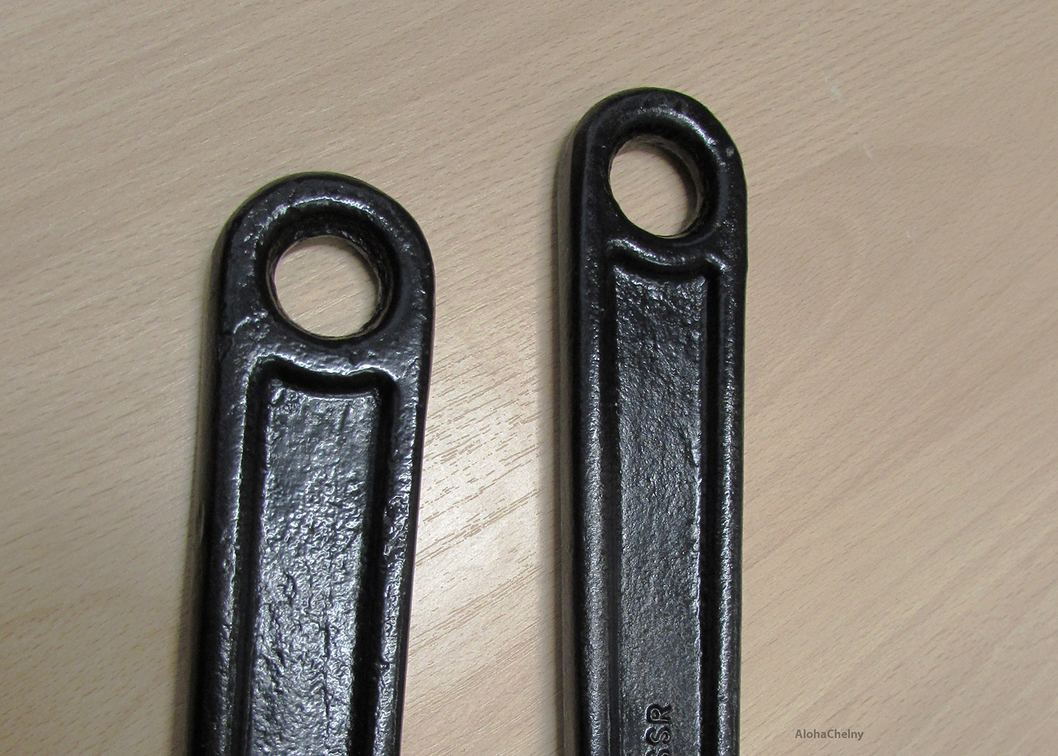 Насмотревшись ютуба сначала пробовал почистить металлической щеткой. Стали появляться контуры надписей, ну и сразу стало возможным увидеть, что это разводные ключи.