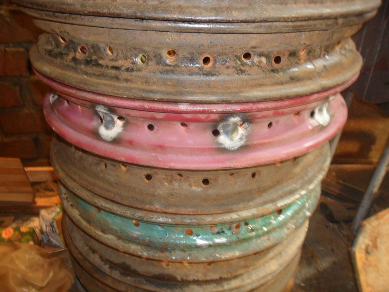 Оставалось только найти недостающие детали и собрать. Обода отобрал максимально ровные из двух десятков, сделал на них выштамповки, как на м72(там они нужны были для того, что если прострелят шины-они не разбортируются с ободов и можно будет ехать так)