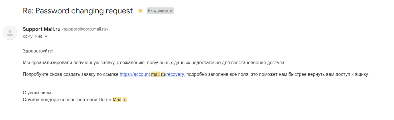 По версии <!--noindex--><a href="https://pikabu.ru/story/vosstanovlenie_pochtyi_mailru_10683013?u=http%3A%2F%2FMail.ru&t=Mail.ru&h=1ecc72bfd391a20619baf82334af169a0ebaa02b" title="http://Mail.ru" target="_blank" rel="nofollow noopener">Mail.ru</a><!--/noindex--> если я хочу сбросить пароль я должен знать все предыдущие пароли.