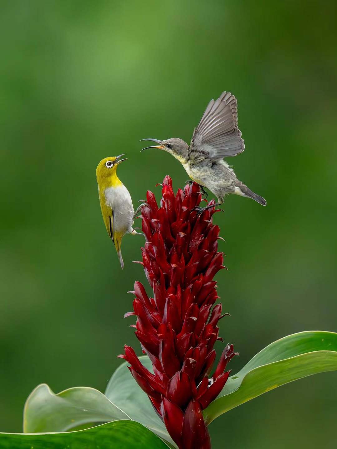 15 Kotbeg0 Дикие животные Восточная белоглазка против пурпуровой нектарницы 5 дней назад У пурпуровой нектарницы (птичка справа) фиолетовые переливы в окрасе только у самцов. Самки сверху оливковые, а снизу желтоватые. Фотограф Kalyanacharya. Белоглазка Нектарница Воробьинообразные Птицы Дикие животные Дикая природа Юго-Восточная Азия Фотография 3 Ещё 0