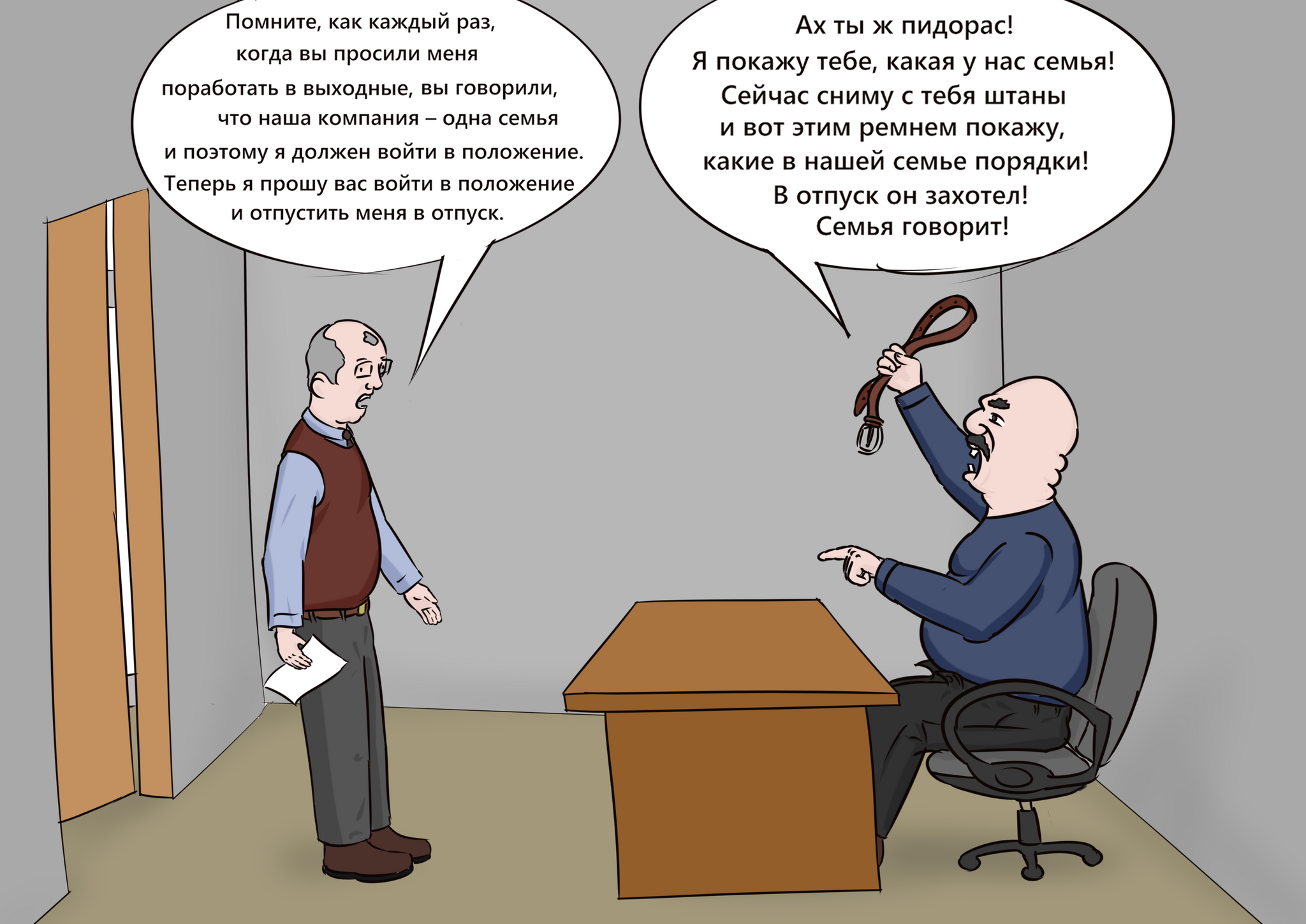 7 solenakrivetka Вот что такое корпоративная «семейность»: 10 месяцев назад [моё] Юмор Картинка с текстом Работа Начальство 1 Ещё 0