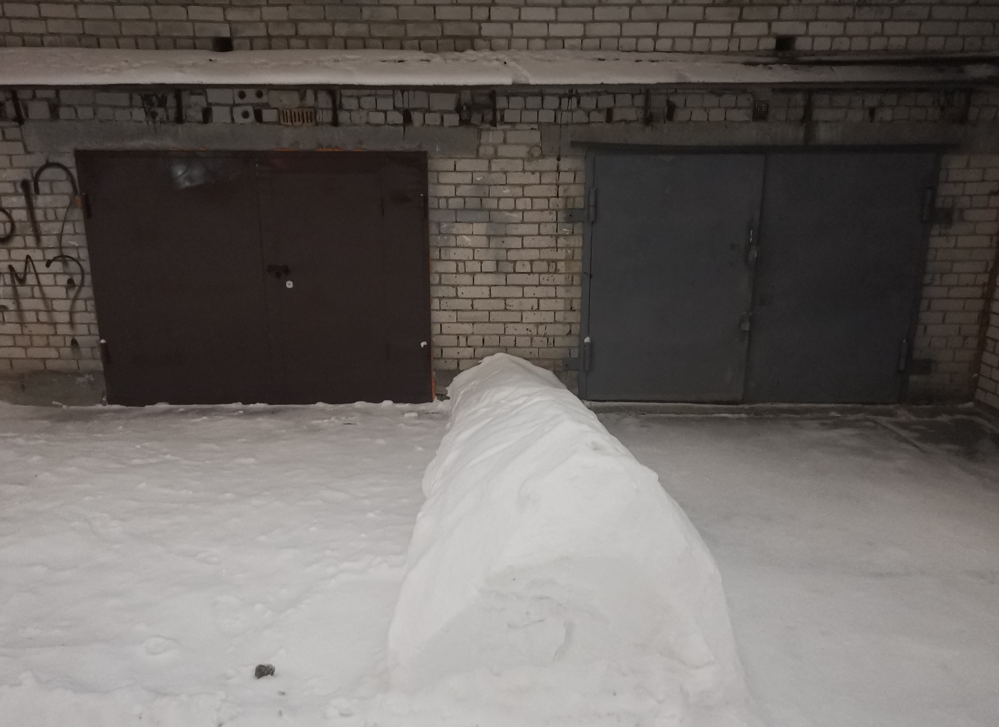 Гаражный кооператив в центре города. Члены кооператива, видимо, достаточно активны - снег вычищен у ворот.