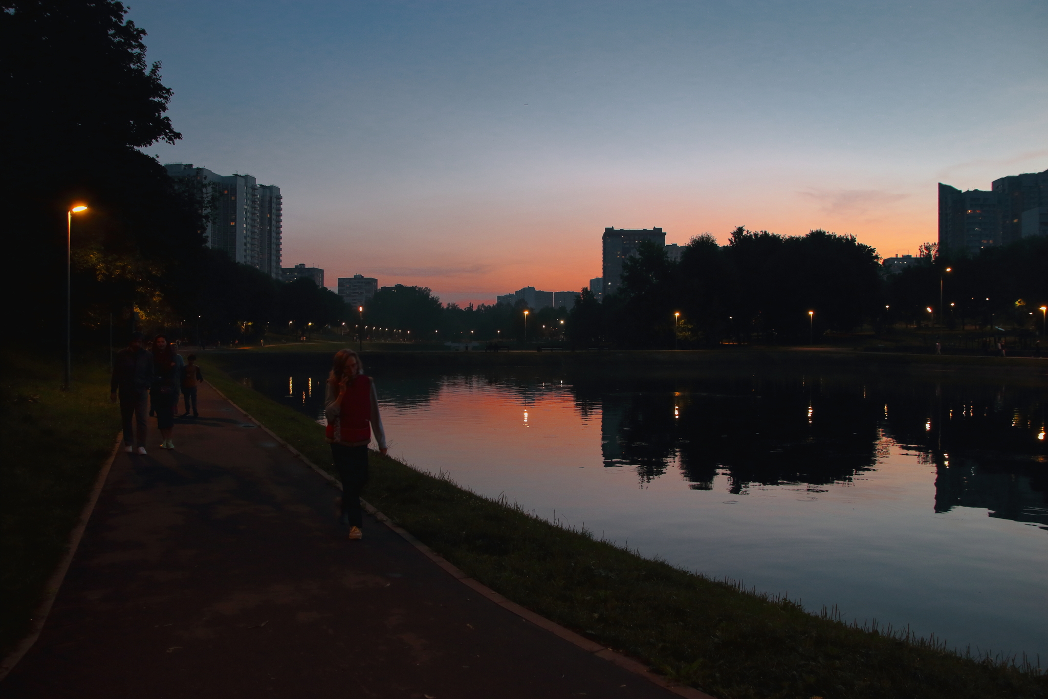 Последние краски заката ещё не погасли, а фонари уже зажигаются, отражаясь в прудах парка – летний вайб мимолётен, тем важнее не пропустить 😉