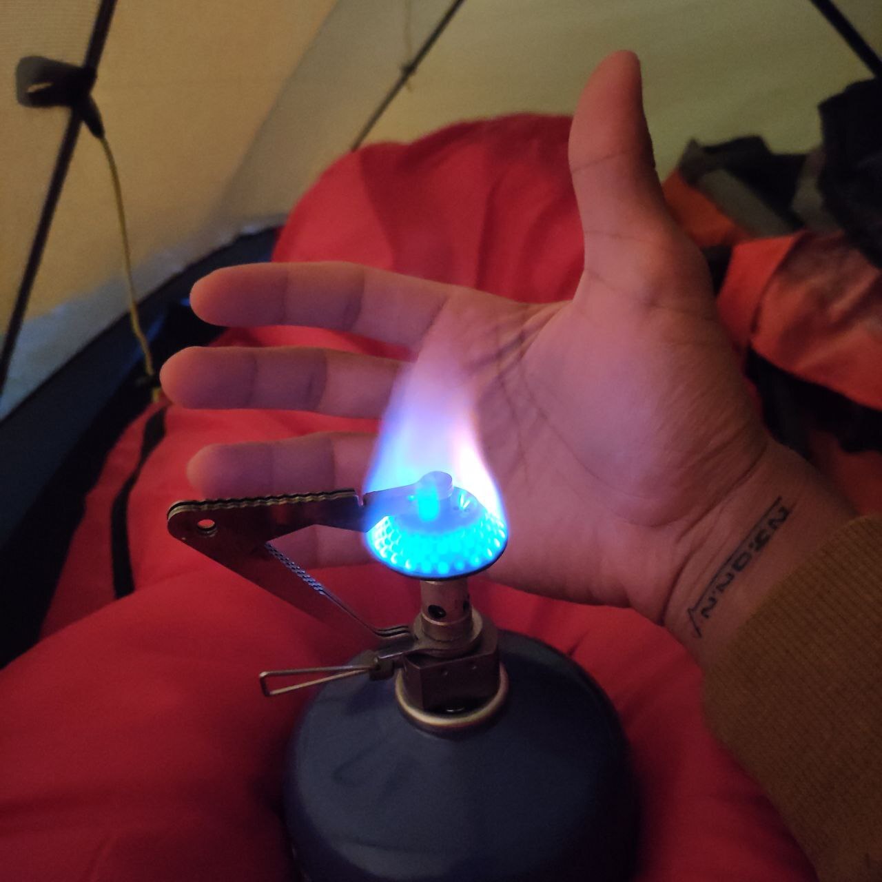 С закатом солнца ушло и тепло. Почитал перед сном, поужинал вместе с мотосемьей, согрелся в палатке, используя газ, и лег спать. Сразу стало ясно, что здесь значительно холоднее, поэтому запихал ноги в двух спальниках в рюкзак. Так значительно лучше. Живём ☺️