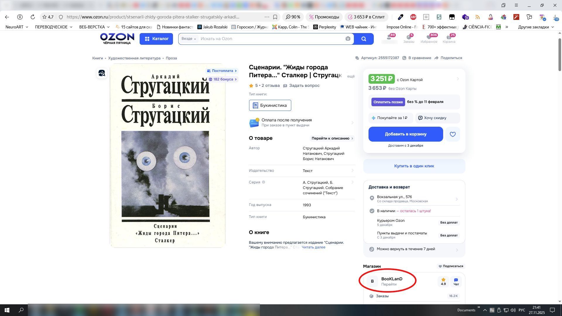 Собираю потихоньку собрание сочинений Стругацких, решил прикупить на Озоне очередной том. Положил в корзину, оплатил полную сумму - 910 р. Сижу довольный, тыкаю то в пикабу, то в другие, не одобряемые, сайты. Не знаю сколько времени прошло, может, пару часов. Собрался закрывать браузер, глянул что там на "озон" - отмена. 😥