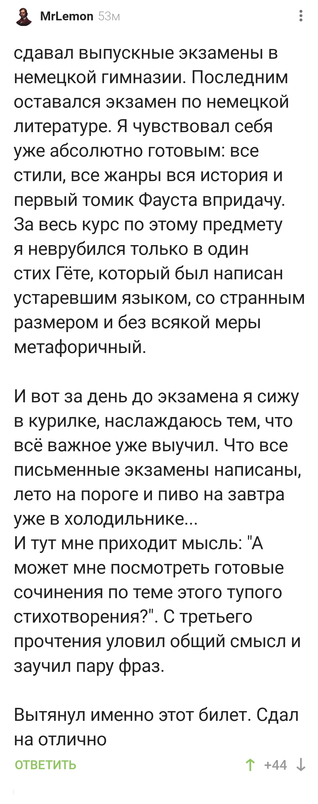 14 Wellikan Вот как нужно экзамены сдавать!) 1 месяц назад #comment_370009634 Экзамен Подготовка Везение Комментарии на Пикабу Длиннопост Скриншот Ещё 0