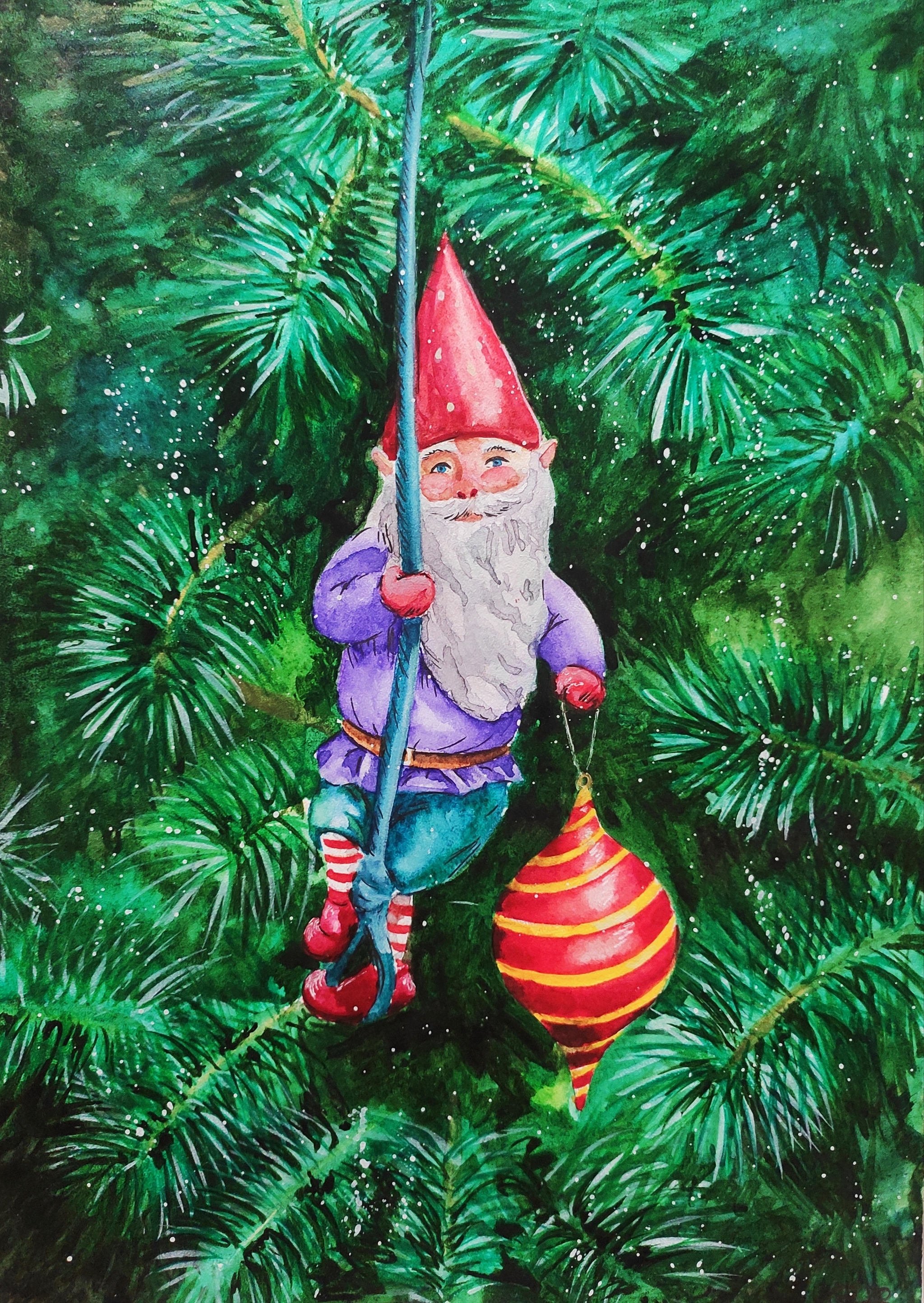 12 Busurmanishe Вот кто наряжает ёлки ^^ 4 года назад [моё] Рождество Гномы Акварель Искусство Арт Картина Длиннопост Ещё 0